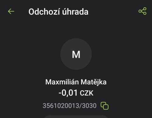 Poslat zprávupřidal/a skutečné jméno majitele účtu: Maxmilián Matějka k bankovnímu účtu: 3561020013/3030