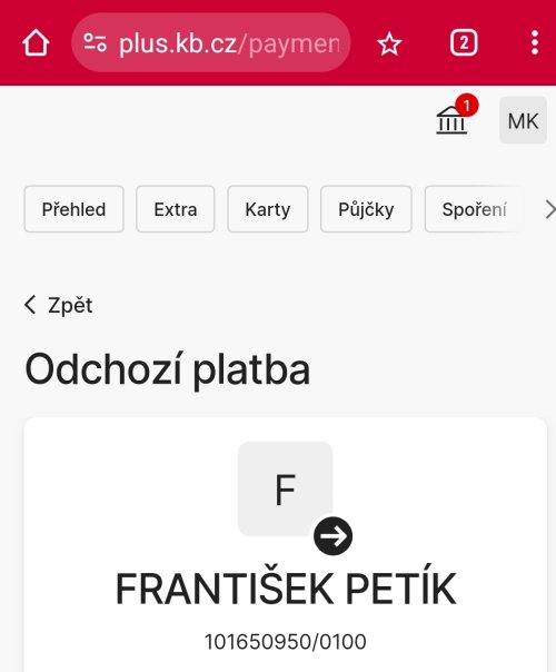 Poslat zprávupřidal skutečné jméno majitele účtu: František Petík k bankovnímu účtu: 101650950/0100
