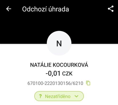 Poslat zprávupřidal skutečné jméno majitele účtu: Natálie Kocourková k bankovnímu účtu: 670100-2220130156/6210