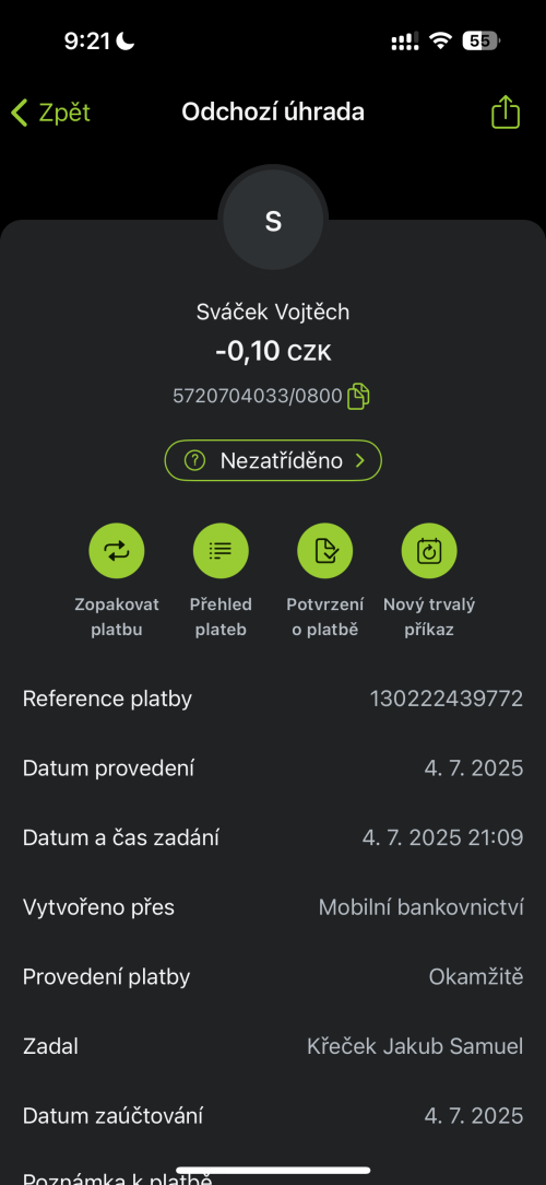 Poslat zprávupřidal/a skutečné jméno majitele účtu: Vojtěch Sváček k bankovnímu účtu: 5720704033/0800
