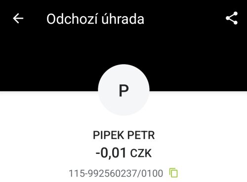 Poslat zprávupřidal skutečné jméno majitele účtu: Petr Pipek k bankovnímu účtu: 115-992560237/0100