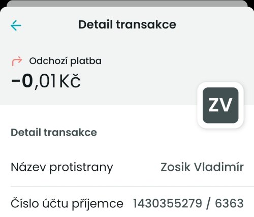 Poslat zprávupřidal skutečné jméno majitele účtu: Vladimír Zosik k bankovnímu účtu: 1430355279/6363