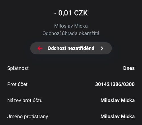 Poslat zprávupřidal skutečné jméno majitele účtu: Miloslav Micka k bankovnímu účtu: 301421386/0300