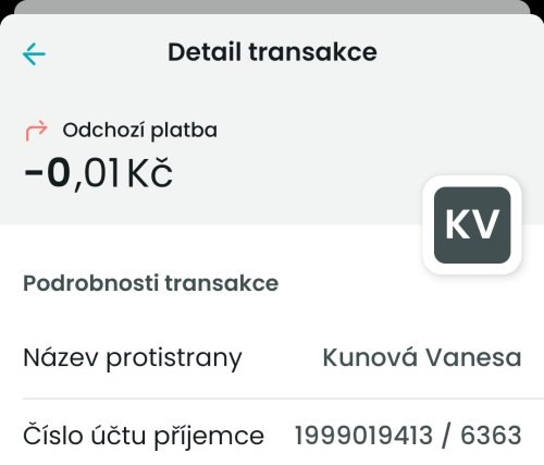 Poslat zprávupřidal skutečné jméno majitele účtu: Vanesa Kunová k bankovnímu účtu: 1999019413/6363