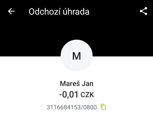 Poslat zprávupřidal skutečné jméno majitele účtu: Jan Mareš k bankovnímu účtu: 3116684153/0800