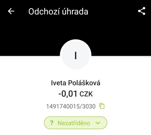 Poslat zprávupřidal skutečné jméno majitele účtu: Iveta Polášková k bankovnímu účtu: 1491740015/3030