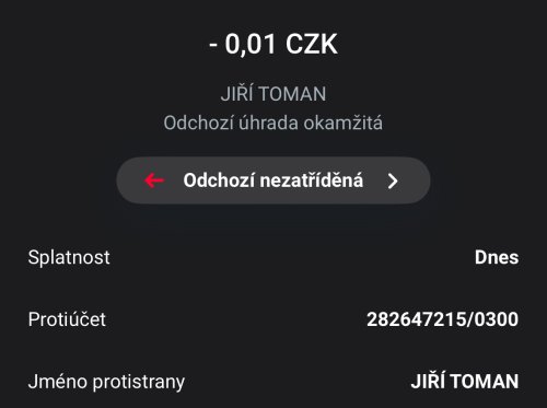 Poslat zprávupřidal skutečné jméno majitele účtu: Jiří Toman k bankovnímu účtu: 282647215/0300