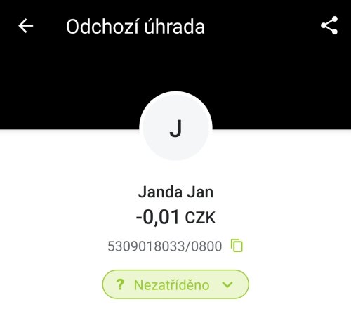 Poslat zprávupřidal skutečné jméno majitele účtu: Jan Janda k bankovnímu účtu: 5309018033/0800