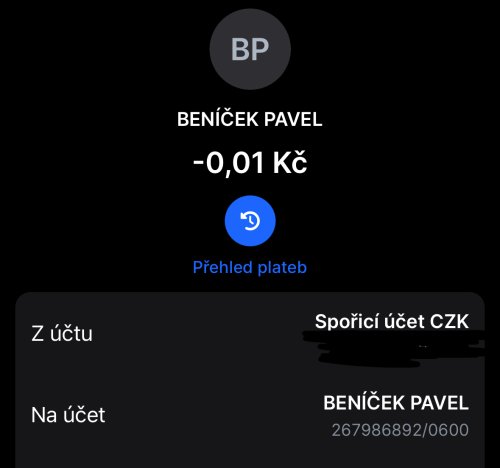 Poslat zprávupřidal skutečné jméno majitele účtu: Pavel Beníček k bankovnímu účtu: 267986892/0600