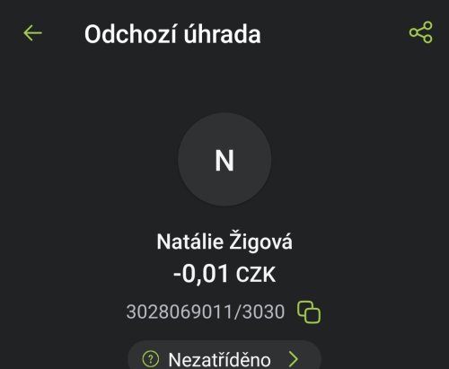 Poslat zprávupřidal/a skutečné jméno majitele účtu: Natálie Žigová k bankovnímu účtu: 3028069011/3030