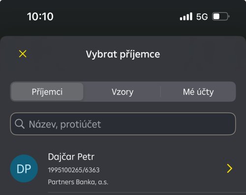 Poslat zprávupřidal skutečné jméno majitele účtu: Petr Dajčar k bankovnímu účtu: 3098089018/3030