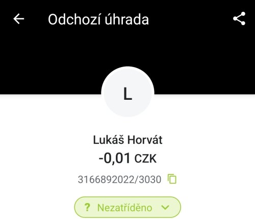 Poslat zprávupřidal skutečné jméno majitele účtu: Lukáš Horvát k bankovnímu účtu: 3166892022/3030