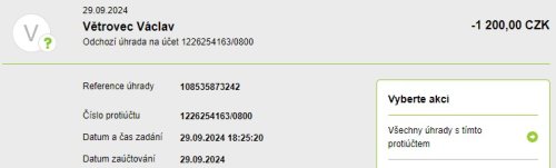 Poslat zprávupřidal skutečné jméno majitele účtu: Václav Větrovec k bankovnímu účtu: 1226254163/0800
