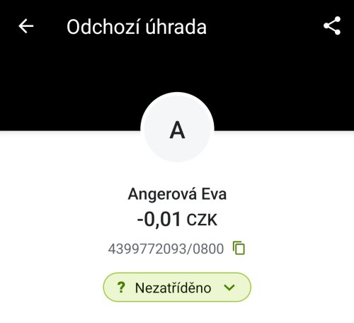 Poslat zprávupřidal skutečné jméno majitele účtu: Eva Angerová k bankovnímu účtu: 4399772093/0800