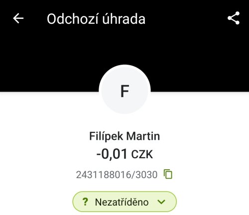 Poslat zprávupřidal skutečné jméno majitele účtu: Martin Filípek k bankovnímu účtu: 2431188016/3030