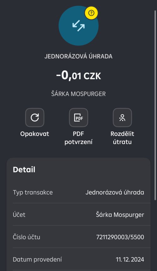 Poslat zprávupřidal skutečné jméno majitele účtu: Šárka Mospurger k bankovnímu účtu: 7211290003/5500