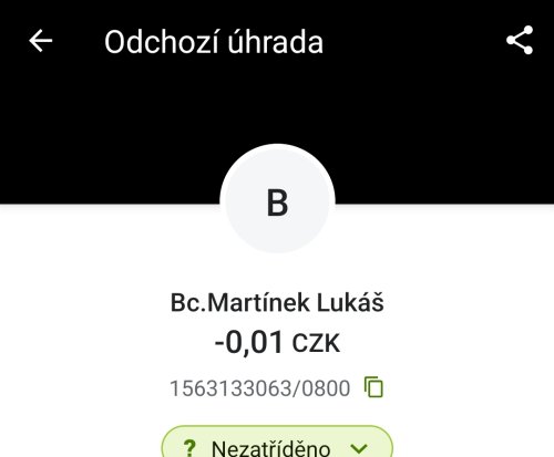 Poslat zprávupřidal skutečné jméno majitele účtu: Lukáš Martínek k bankovnímu účtu: 1563133063/0800