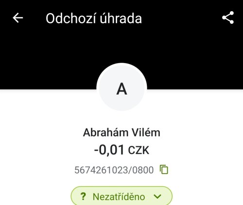 Poslat zprávupřidal skutečné jméno majitele účtu: Abrahám Vilém k bankovnímu účtu: 5674261023/0800