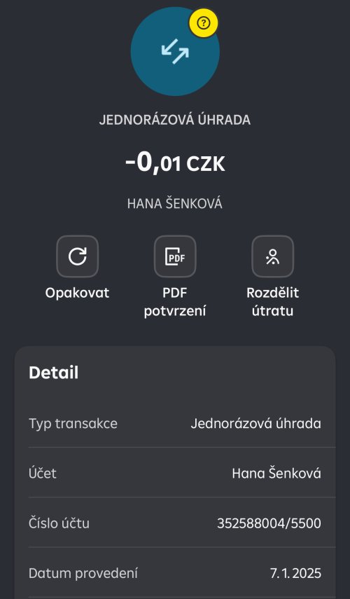 Poslat zprávupřidal skutečné jméno majitele účtu: Hana Šenková k bankovnímu účtu: 352588004/5500