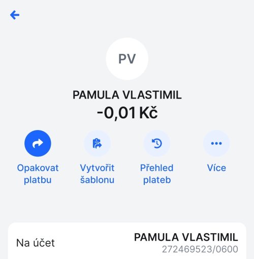 Poslat zprávupřidal skutečné jméno majitele účtu: Vlastimil Pamula k bankovnímu účtu: 272469523/0600