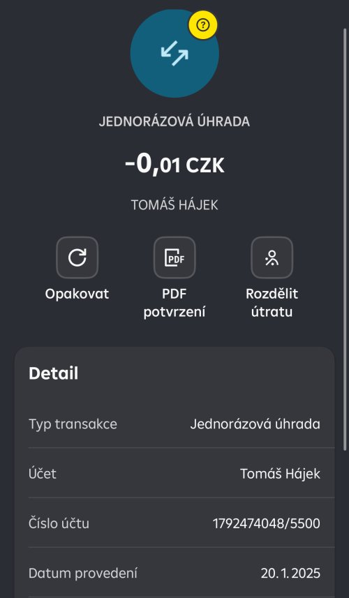 Poslat zprávupřidal skutečné jméno majitele účtu: Tomáš Hájek k bankovnímu účtu: 1792474048/5500