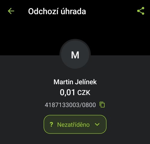 Poslat zprávupřidal/a skutečné jméno majitele účtu: Martin Jelínek k bankovnímu účtu: 4187133003/0800