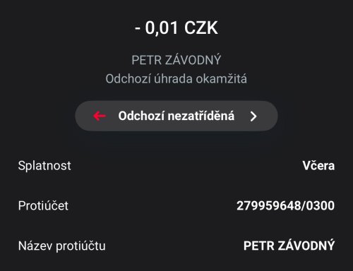 Poslat zprávupřidal skutečné jméno majitele účtu: Petr Závodný k bankovnímu účtu: 279959648/0300