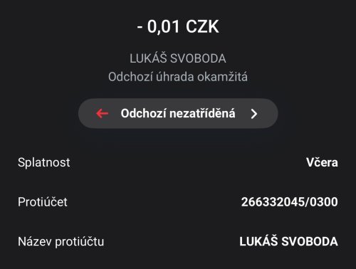 Poslat zprávupřidal/a skutečné jméno majitele účtu: Lukáš Svoboda k bankovnímu účtu: 266332045/0300