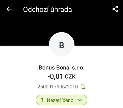 Poslat zprávupřidal skutečné jméno majitele účtu: Bonus Bona s.r.o. k bankovnímu účtu: 2500917906/2010