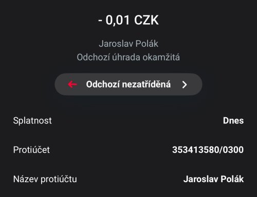 Poslat zprávupřidal skutečné jméno majitele účtu: Jaroslav Polák k bankovnímu účtu: 353413580/0300