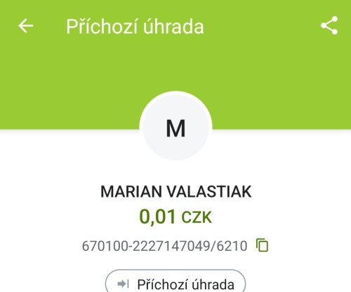 Poslat zprávupřidal skutečné jméno majitele účtu: Marian Valastiak k bankovnímu účtu: 670100-2227147049/6210