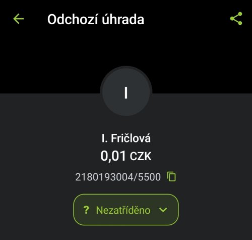 Poslat zprávupřidal/a skutečné jméno majitele účtu: I. Fričlová k bankovnímu účtu: 2180193004/5500