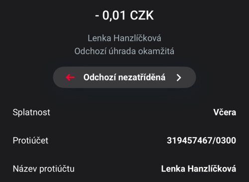 Poslat zprávupřidal skutečné jméno majitele účtu: Lenka Hanzlíčková k bankovnímu účtu: 319457467/0300