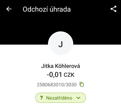 Poslat zprávupřidal skutečné jméno majitele účtu: Jitka Köhlerová k bankovnímu účtu: 2580683010/3030