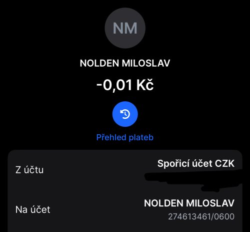 Poslat zprávupřidal skutečné jméno majitele účtu: Miloslav Nolden k bankovnímu účtu: 274613461/0600
