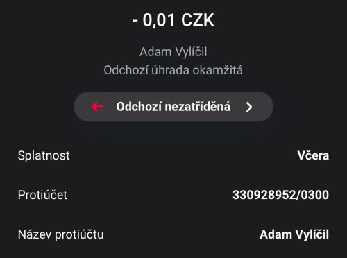 Poslat zprávupřidal/a skutečné jméno majitele účtu: Adam Vylíčil k bankovnímu účtu: 330928952/0300
