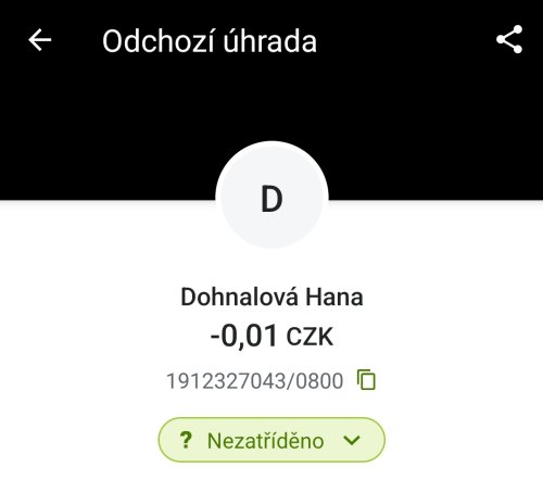 Poslat zprávupřidal/a skutečné jméno majitele účtu: Hana Dohnalová k bankovnímu účtu: 1912327043/0800