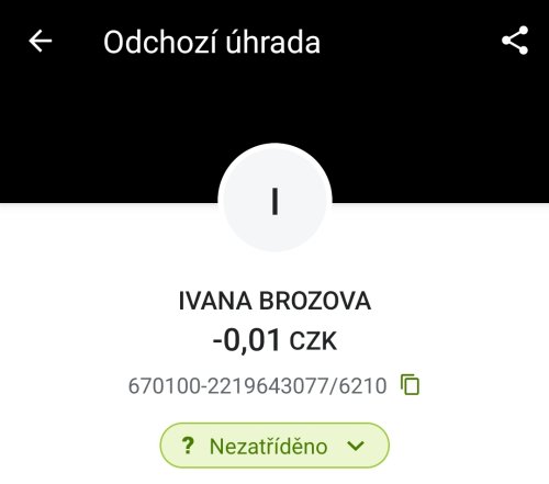 Poslat zprávupřidal/a skutečné jméno majitele účtu: Ivana Brožová k bankovnímu účtu: 670100-2219643077/6210