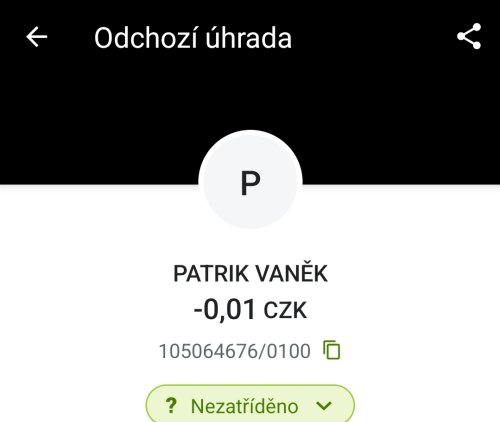 Poslat zprávupřidal/a skutečné jméno majitele účtu: Patrik Vaněk k bankovnímu účtu: 105064676/0100