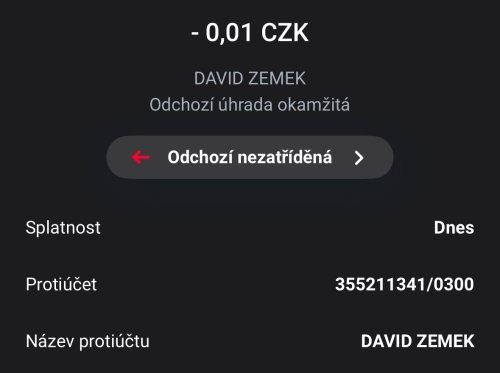 Poslat zprávupřidal/a skutečné jméno majitele účtu: David Zemek k bankovnímu účtu: 355211341/0300