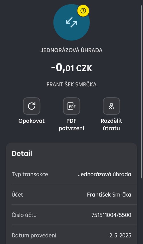 Poslat zprávupřidal/a skutečné jméno majitele účtu: František Smrčka k bankovnímu účtu: 751511004/5500