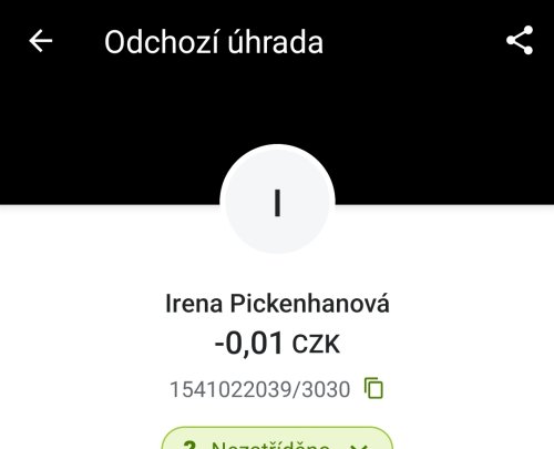 Poslat zprávupřidal/a skutečné jméno majitele účtu: Irena Pickenhanová k bankovnímu účtu: 1541022039/3030