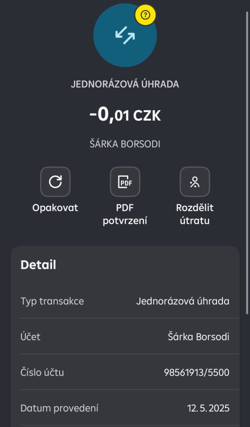 Poslat zprávupřidal/a skutečné jméno majitele účtu: Šárka Borsodi k bankovnímu účtu: 98561913/5500