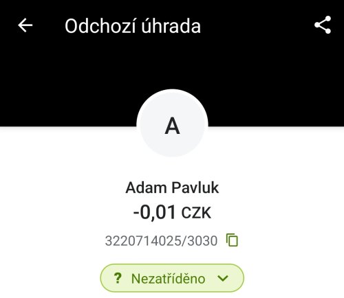 Poslat zprávupřidal/a skutečné jméno majitele účtu: Adam Pavluk k bankovnímu účtu: 3220714025/3030