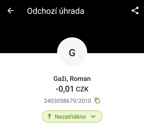 Poslat zprávupřidal/a skutečné jméno majitele účtu: Roman Gaži k bankovnímu účtu: 2403058679/2010