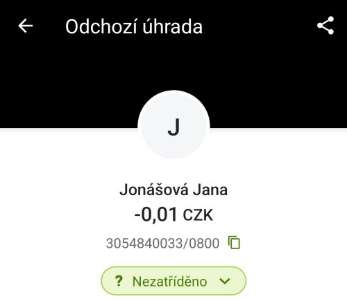 Poslat zprávupřidal/a skutečné jméno majitele účtu: Jana Jonášová k bankovnímu účtu: 3054840033/0800