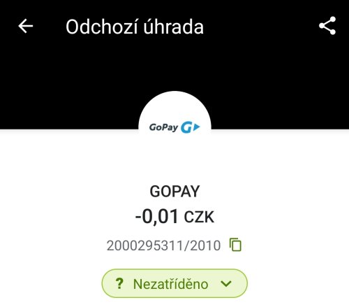 Poslat zprávupřidal/a skutečné jméno majitele účtu: Gopay Gopay k bankovnímu účtu: 2000295311/2010