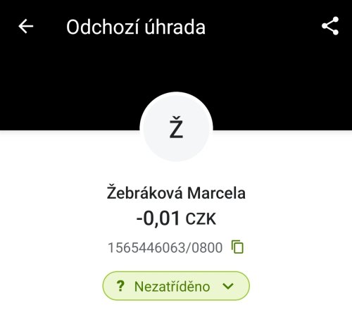 Poslat zprávupřidal/a skutečné jméno majitele účtu: Marcela Žebráková k bankovnímu účtu: 1565446063/0800