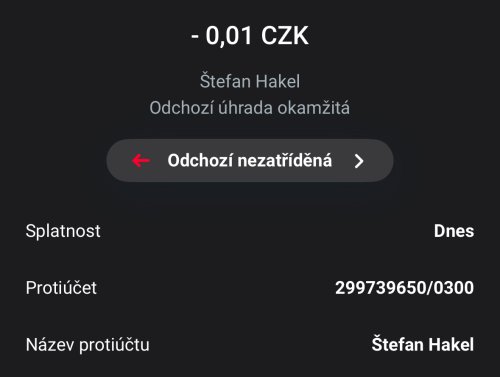 Poslat zprávupřidal/a skutečné jméno majitele účtu: Štefan Hakel k bankovnímu účtu: 299739650/0300