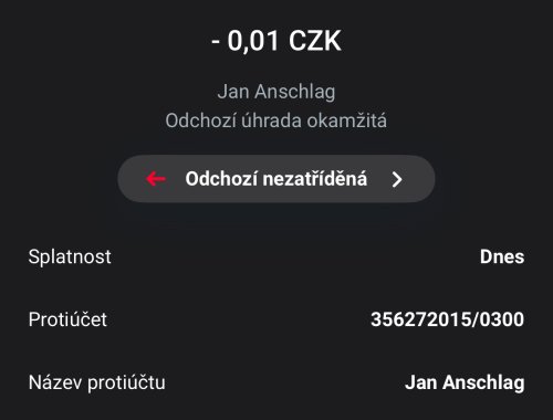 Poslat zprávupřidal/a skutečné jméno majitele účtu: Jan Anschlag k bankovnímu účtu: 356272015/0300